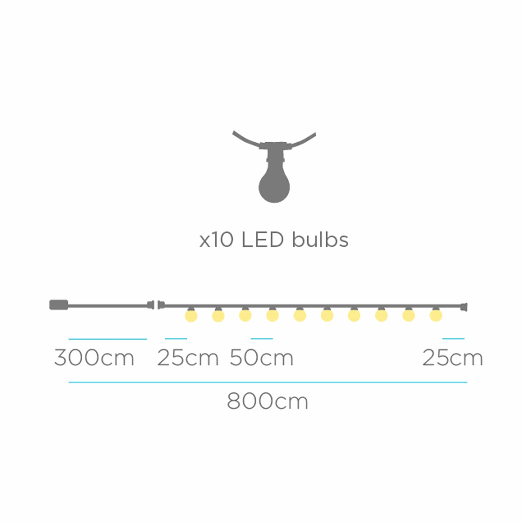 La guirlande Allegra, un produit de Newgarden, est un objet de décoration novateur et polyvalent. Il peut être utilisé pour ajouter du charme aux événements et aux fêtes, ainsi que pour embellir votre maison ou tout espace extérieur, comme les jardins, les terrasses et même les établissements commerciaux. De plus, il peut servir de superbe décoration de Noël. Ce qui distingue cette guirlande des autres guirlandes sur le marché, c'est son design vintage et ses 10 ampoules LED intégrées remplaçables, une caractéristique que l'on ne retrouve pas couramment dans les guirlandes décoratives.