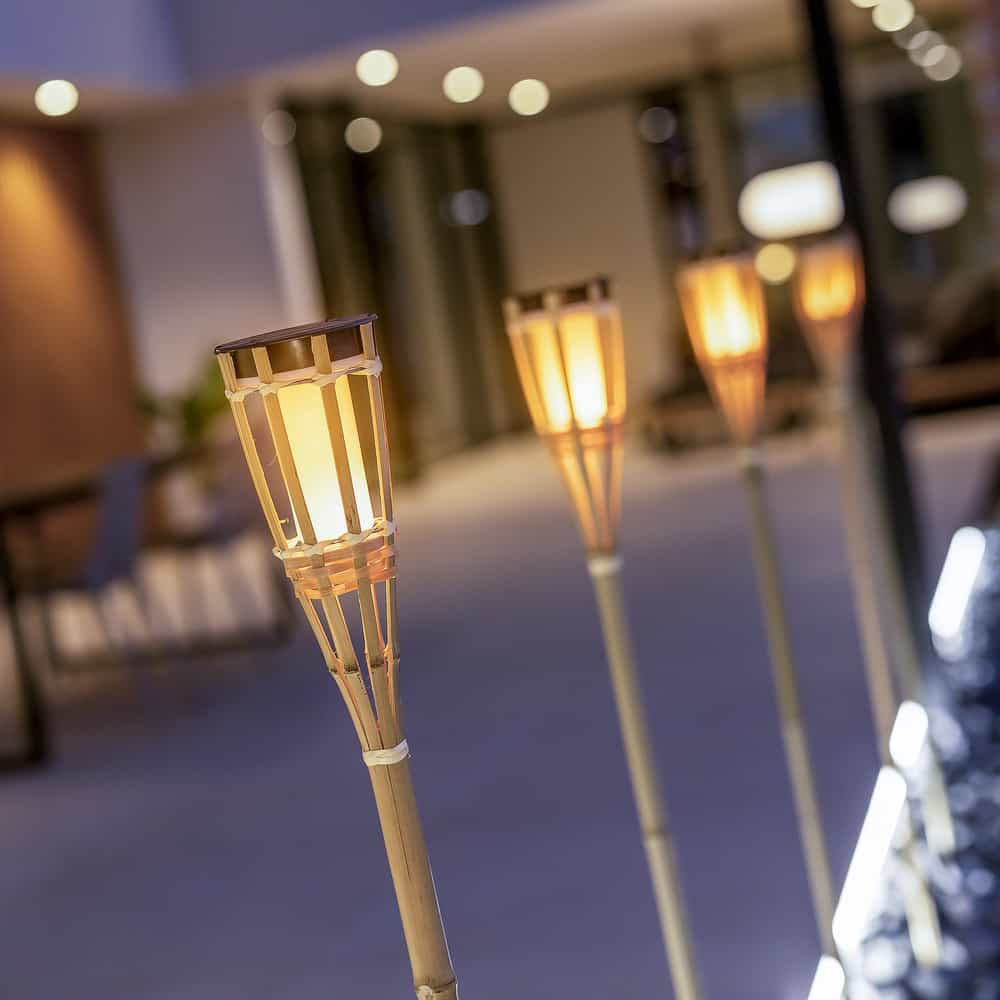 The Hiama garden spike from Newgarden is a handcrafted outdoor lighting solution that utilizes solar power. Made from natural bamboo, it features an LED module and solar panel on top for easy charging. Its versatility allows it to be placed in a variety of settings, such as passageways, next to a swimming pool, or even in a planter.