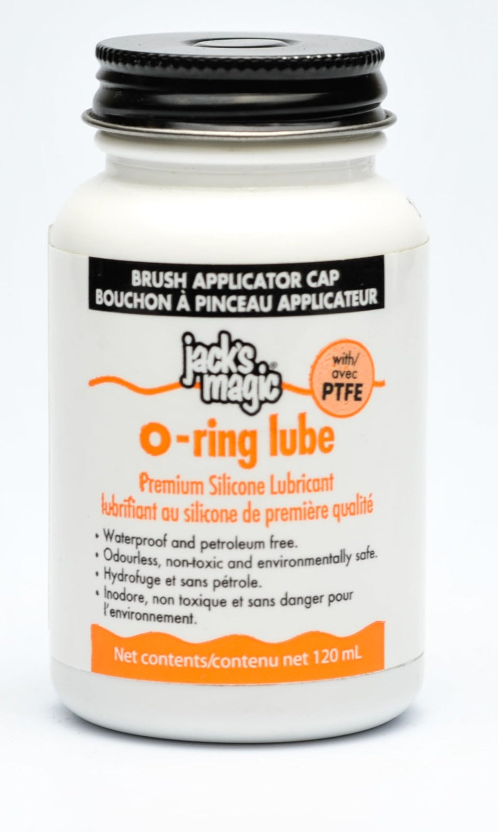 Jack's Magic O'-Ring Lube est un lubrifiant (PTFE) à base de silicone de première qualité incluant un pinceau applicateur.